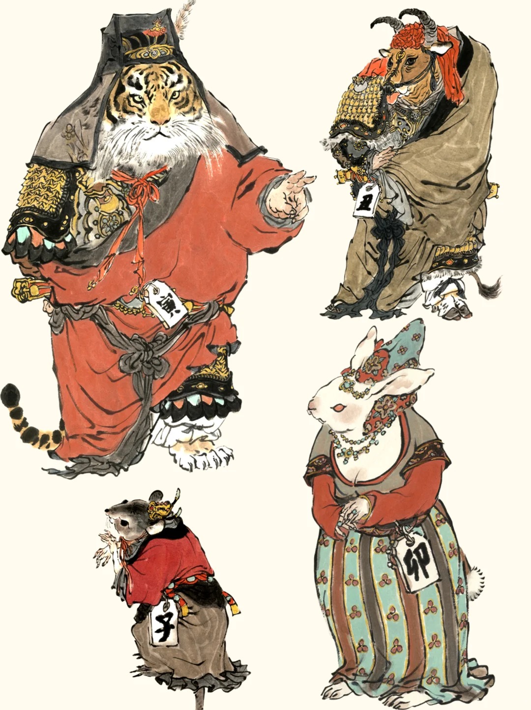 这些形象是戴老90年代所画继《大闹天宫》人物造型后创作的一套生肖作品将生肖动物拟人化:虎披甲胄、兔着......详情进入